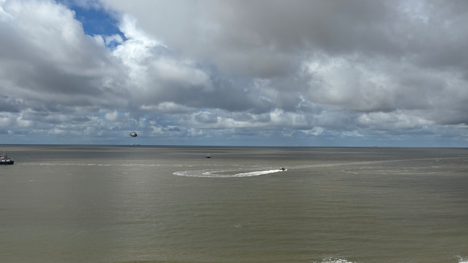 Het aanhoudende gebrom duidde op een helikopter boven zee.