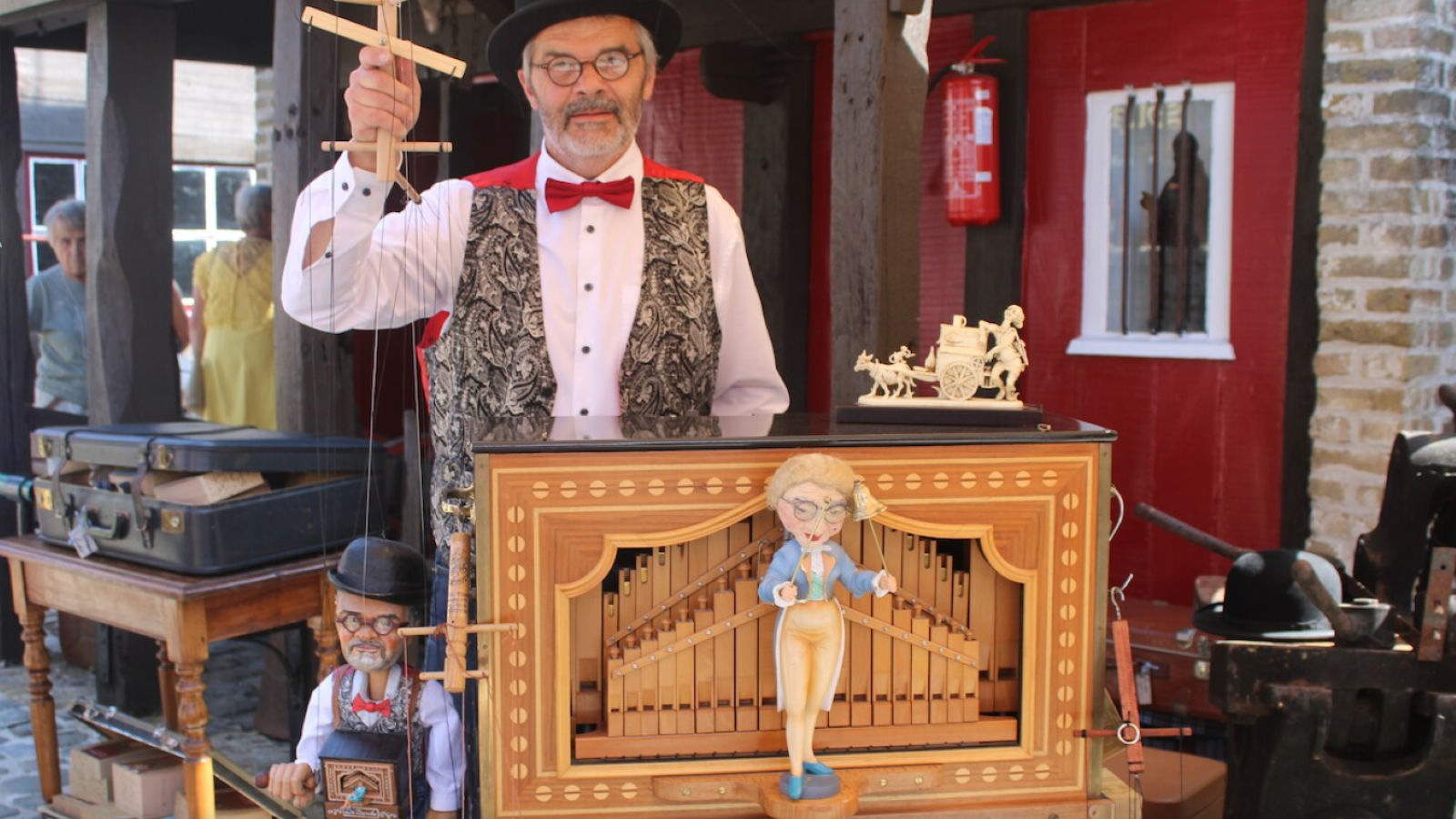 Zijn vrouw draaide het orgel terwijl hij zelf het publiek ‘bespeelde’ met zijn look-a-like marionet