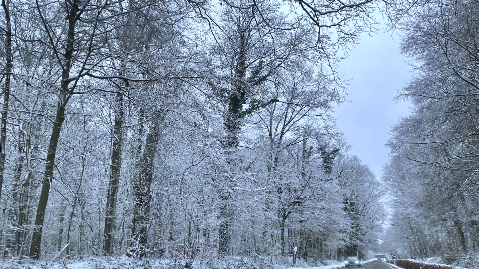 De wind had nog geen vat op de besneeuwde bomen. Hoe mooi was dat.