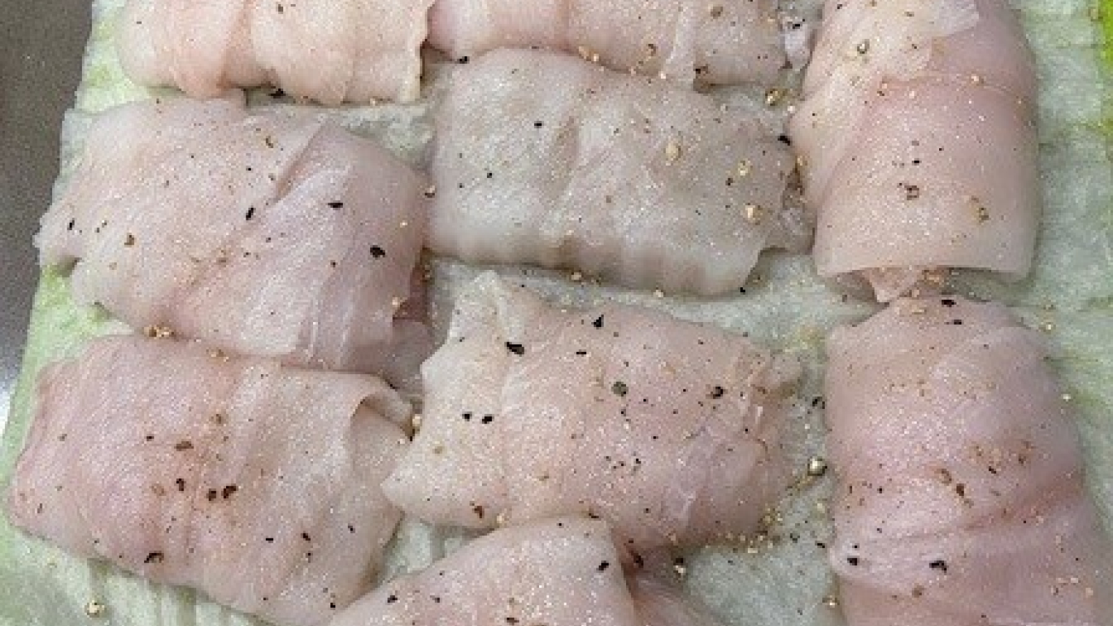 Ik draai de tong in paupiettes en kruid ze met een snuifje zout en een draai van de pepermolen.